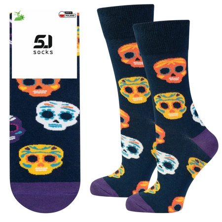 - Skarpety męskie na Halloween z motywem czaszki. Wygodne, bawełniane i stylowe – idealne na imprezę, prezent lub codzienny look z charakterem.